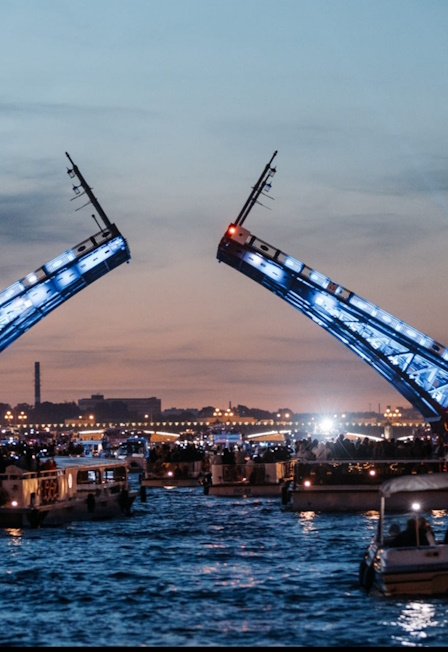 Выйдет в Неву и пройдет к Большой Невке, чтоб открыть пассажирам виды на известнейший крейсер Аврора, далее пройдет в центральную акваторию Невы, сделает разворот у Медного Всадника и в самую центральную часть Невы, чтоб занять лучшие видовые места у Дворцового моста и замереть в ожидании невероятного зрелища — разведения мостов.