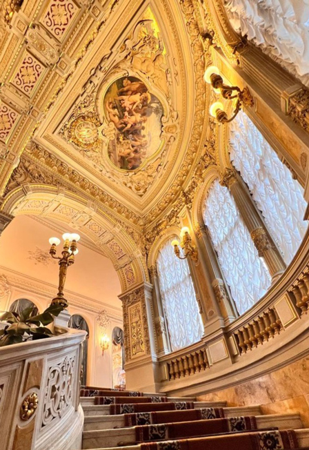 Полюбуетесь лестницами, люстрами и скульптурами.