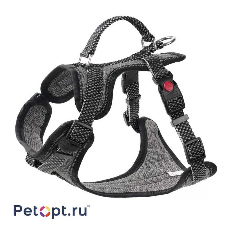 Шлейка с ручкой, анатомическая с мягкой подкладкой из прочной дышащей ткани. Расширенная нагрудная часть. Расчитана на повышенные нагрузки, очень комфортная. Регулировка в лямок в передней и задней части. Замок фастекс со стопором. Светоотражающие вкрапления в материале. Прочная ручка для дополнительного контроля за собакой в сложных ситуациях.