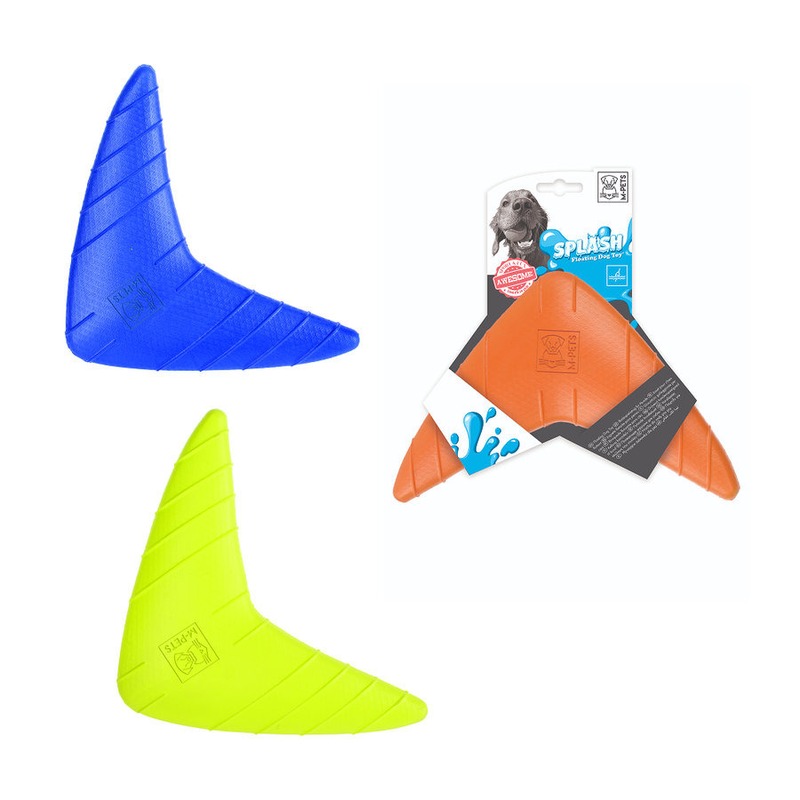 Игрушка для собак в форме бумеранга SPLASH - эта яркая и водонепроницаемая игрушка станет идеальным спутником для водных приключений вашего питомца! Если ваша собака обожает плавать, эта игрушка пробудит в ней охотничий инстинкт и вдохновит на азартное преследование. Материал EVA очень легкий, что особенно удобно для собак маленьких пород. Прочная и безопасная, она сделает каждое купание незабываемым. Основные характеристики: - Размеры: 19 x 23 x 3 см - Материал: ЭВА (этиленвинилацетат) - Плавучая: остается на поверхности воды Погрузите вашего питомца в мир веселых водных игр вместе с этой уникальной плавающей игрушкой!