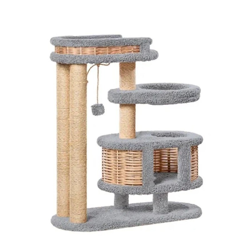 Основание - 44*44 см., высота - 70 см., диаметр столбов - 6 см. Обивка - ковролин, обмотка - сизалевый канат.
