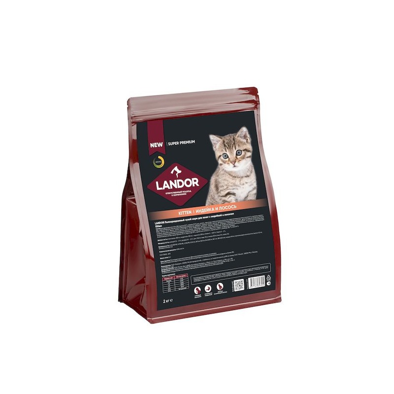 Landor полнорационный сухой корм для котят, с индейкой и лососем - 2 кг повседневный супер премиум для котят с индейкой для всех пород мешок Российский корм 1 уп. х 1 шт. х 2 кг