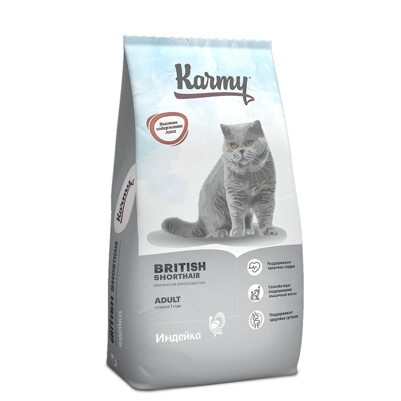 Karmy British shorthair – сухой корм для взрослых кошек породы Британская короткошерстная старше 1 года.