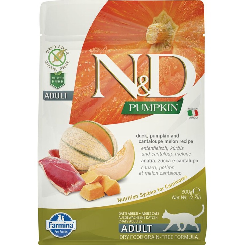 Farmina N&D Pumpkin Cat Grain Free Duck сухой беззерновой корм для взрослых кошек с тыквой, уткой и дыней - 300 г повседневный супер премиум беззерновые для взрослых с уткой мешок Импортный корм 1 уп. х 1 шт. х 0.3 кг