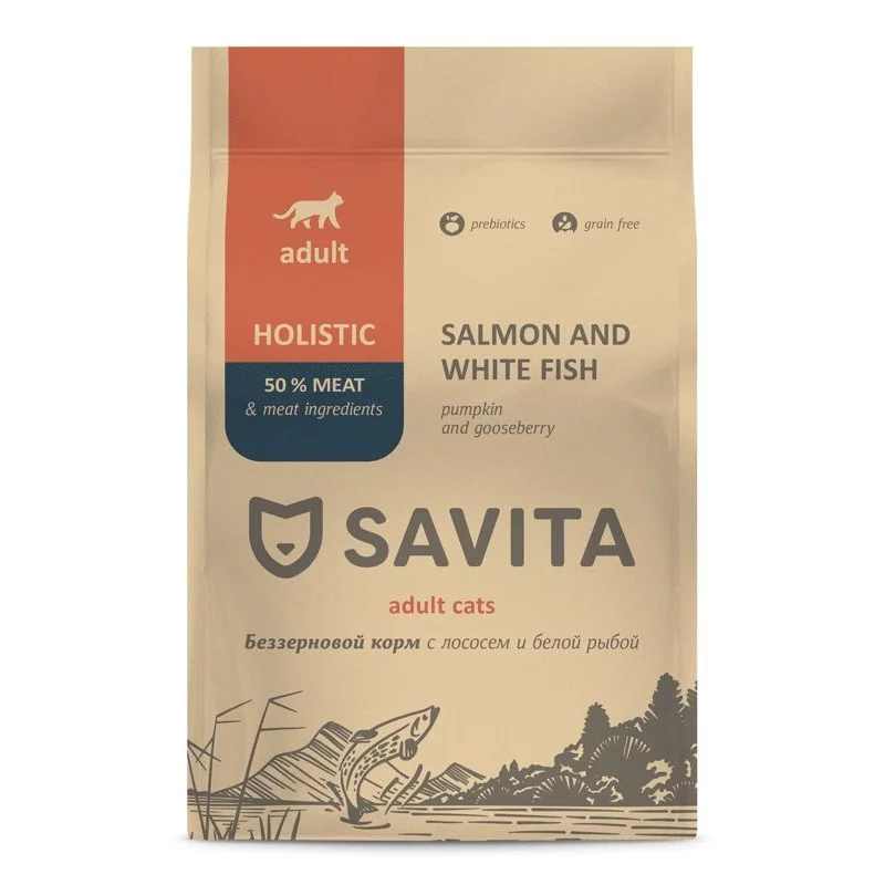 Savita - с уважением к дикой природе Вашего питомца. Польза природных ингредиентов и многолетний опыт, объединённые с эффективностью современных технологий. Полнорационные и сбалансированные корма Savita класса холистик содержат высокий процент мясных ингредиентов, необходимых витаминов и минералов, без добавления зерновых культур в составе. Надолго обеспечивают кошку необходимой энергией на весь день. Каждый ингредиент тщательно подобран в соответствии с природными потребностями питомца и является важным компонентом в рецептуре корма, минимизируя риск возникновения аллергических реакций.