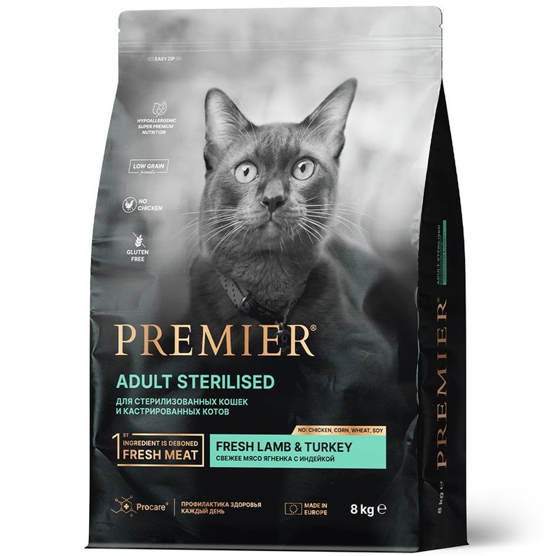 Для взрослых стерилизованных кошек и кастрированных котов от 1 года с чувствительным пищеварением или склонных к аллергии или пожилых кошек. Свежее гипоаллергенное и питательное мясо ягненка и постной индейки благотворно влияют на пищеварительную систему кошки. Благодаря гипоаллергенным ингредиентам, одному виду зерновых, отсутствию глютена, корм имеет отличную усвояемость, высокую пищевую ценность и помогает оставаться вашему питомцу здоровым и жизнерадостным на протяжении долгих лет жизни.