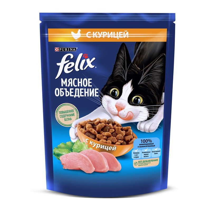 Для кошек с их охотничьими инстинктами нет ничего привлекательнее мясного вкуса и аромата. Эксперты Purina, разрабатывая сухие корма для домашних питомцев, создали корм для взрослых кошек Felix Мясное объедение — специально для Вашего любителя мяса.