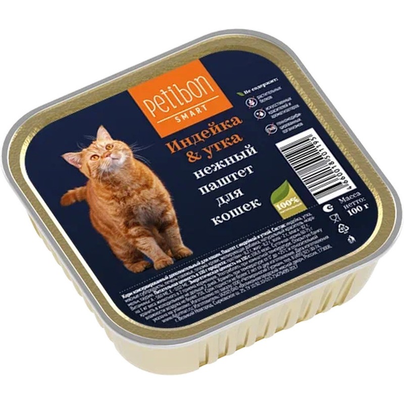 Petibon Smart влажный корм для кошек, паштет с ИНДЕЙКОЙ и УТКОЙ, в ламистерах - 100 г паштет и ламистеры Российский корм 1 уп. х 24 шт. х 2.4 кг