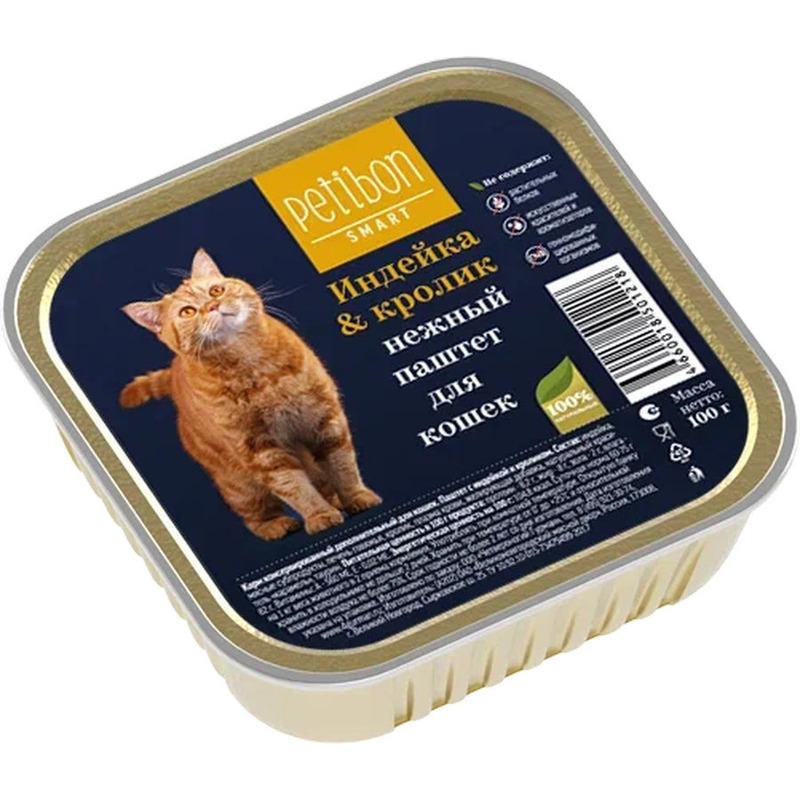 Petibon Smart влажный корм для кошек, паштет с ИНДЕЙКОЙ и КРОЛИКОМ, в ламистерах - 100 г премиум для взрослых с индейкой паштет и ламистеры Российский корм 1 уп. х 24 шт. х 2.4 кг Корма для кошек Старая Ферма | V4.Ru: Маркетплейс