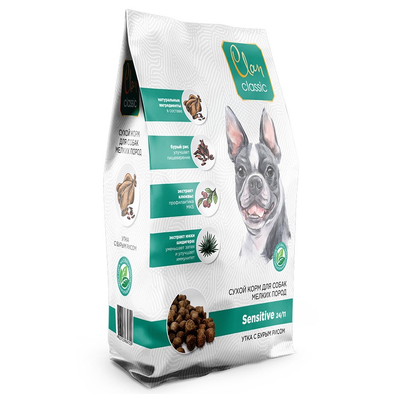 Clan Classic Sensitive 24/11 сухой корм для взрослых собак мелких пород с уткой и бурым рисом - 10 кг повседневный премиум для взрослых с уткой породы мелкого размера мешок Российский корм 1 уп. х 1 шт. х 10 кг