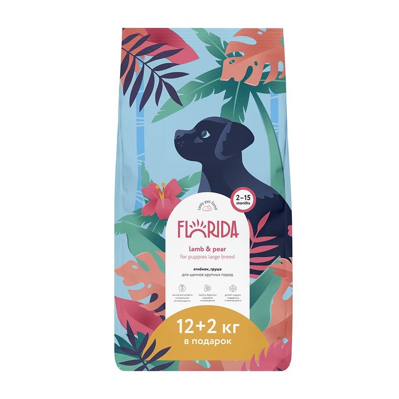 Florida Lamb and Pear - это сухой корм суперпремиум класса, состоящий из ягненка и груши, предназначенный для щенков крупных пород. Это сбалансированное полнорационное питание способствует правильному развитию щенка. В составе корма Florida используется только белок животного происхождения.