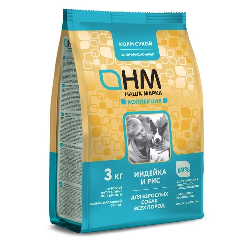 Наша Марка Коллекция полнорационный сухой корм для собак всех пород, с индейкой и рисом - 3 кг супер премиум низкозерновые для взрослых с рисом мешок Российский корм 1 уп. х 1 шт. х 3 кг