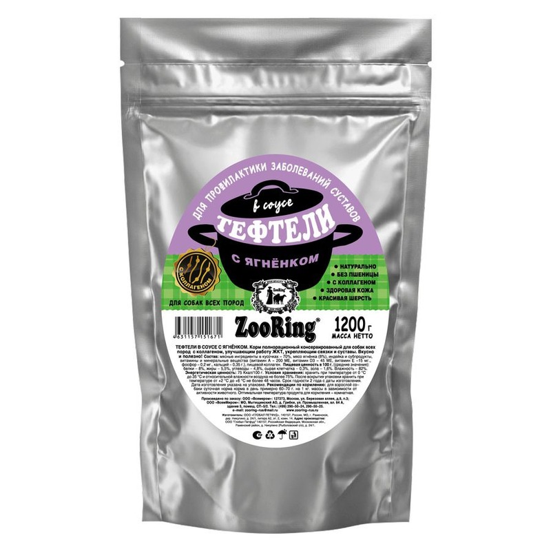 ZooRing влажный корм для собак, тефтели в соусе с ЯГНЁНКОМ - 1,2 кг премиум для взрослых с ягненком консервы (в железной банке) Россия 1 уп. х 4 шт. х 4.8 кг
