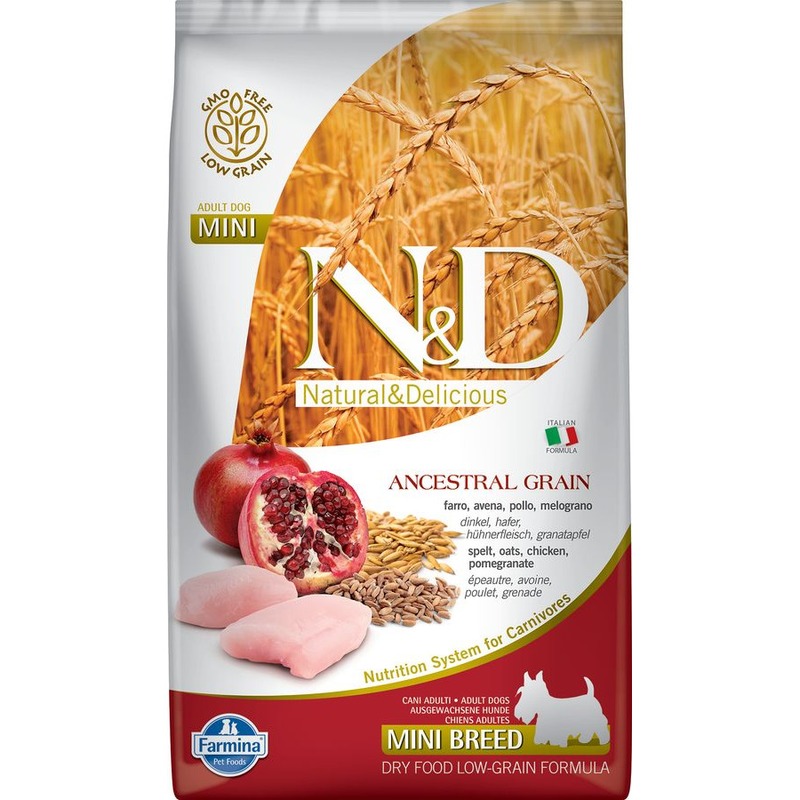 Farmina N&D Ancestral Grain Dog Chicken, Spelt, Oats And Pomegranate Adult сухой низкозерновой корм для взрослых собак мелких пород с курицей и гранатом - 2,5 кг повседневный супер премиум низкозерновые для взрослых с курицей породы мелкого размера ме