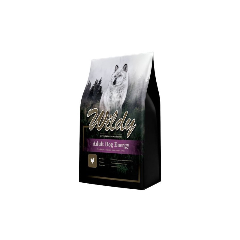 Wildy Adult Dog Energy Сухой корм с курицей для активных собак Полноценный сухой корм для взрослых собак, ведущих активный образ жизни. Специально сбалансированная формула учитывает повышенные потребности таких собак в энергии и питательных веществах и обеспечивает крепкие зубы и кости, красивую, здоровую шерсть и прекрасное пищеварение.