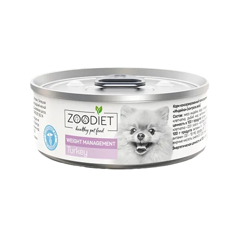 Zoodiet Weight Management влажный корм для собак, контроль веса, с ИНДЕЙКОЙ, в консервах - 100 г супер премиум с индейкой консервы (в железной банке) Российский корм 1 уп. х 6 шт. х 0.6 кг