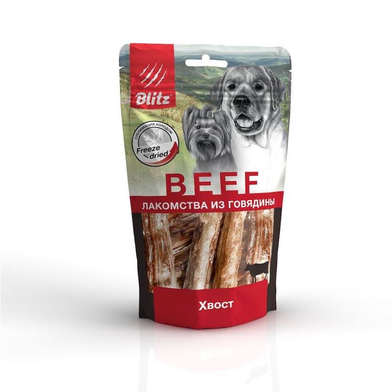 Сублимированное лакомство для собак Blitz «Хвост» — это не просто удовольствие и радость для вашего питомца, но и натуральный способ укрепить его здоровье. Сушёные с помощью сублимации говяжьи хвосты для собак изготавливаются из отруба без кожи, но с небольшим количеством мышечной и соединительной тканей. Эта современная технология позволяет сохранить в готовом продукте до 95% полезных веществ так как сублимация не предполагает применение высоких температур.