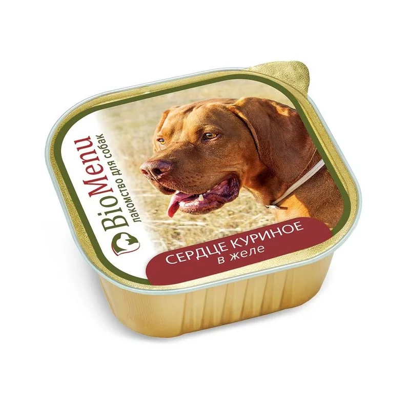 Мясные консервы для собак BioMenu. Изготовлены из натурального российского сырья. Не содержат сои, ароматизаторов, искусственных красителей и ГМО.