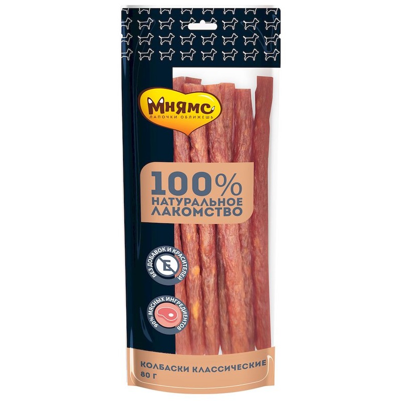 Мнямс лакомство для собак колбаски «классические» – вкусное и полезное лакомство с большим содержанием мяса для собак и щенков старше 3-х месяцев.