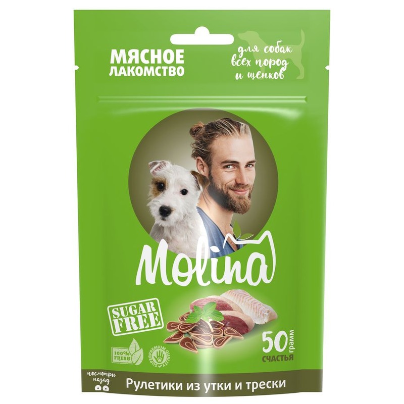 Molina лакомство для собак всех пород и щенков "Рулетики из утки и трески" - 50 г супер премиум для щенков с треской для всех пород Китай 1 уп. х 1 шт. х 0.05 кг
