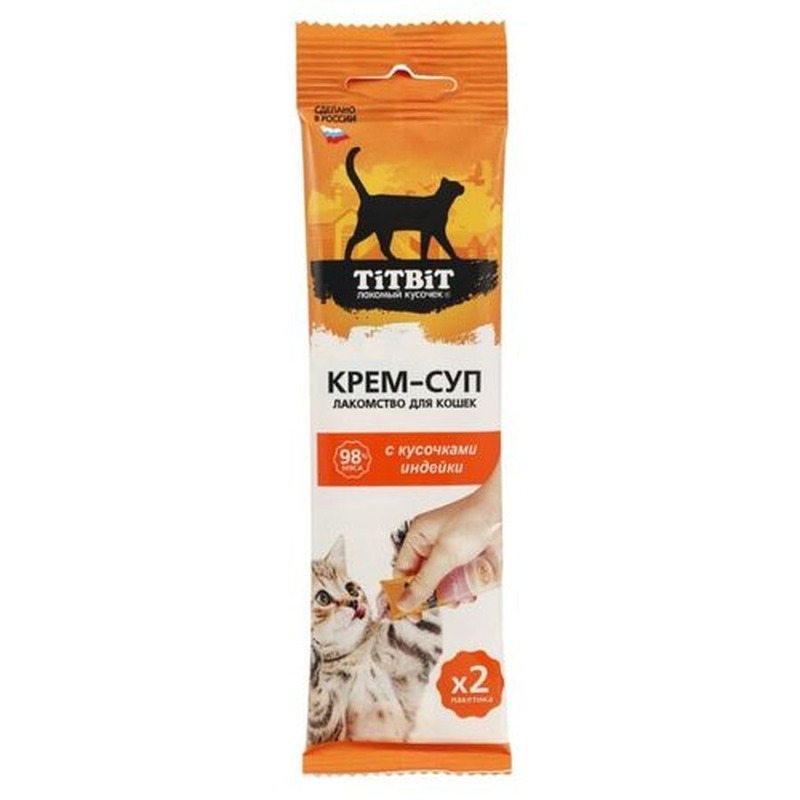 Крем-суп для кошек TITBIT – это специально разработанные вкусные и полезные продукты, которые: 1. Содержат кусочки свежего мяса; 2. Содержат 98% мясных ингредиентов; 3. Содержат дополнительные полезные ингредиенты (таурин для поддержки зрения, сердца, пищеварительной, половой и иммунной систем; морковь для поддержки зрения и пищеварения; петрушка для поддержки мочеполовой, сердечно-сосудистой и пищеварительной систем).