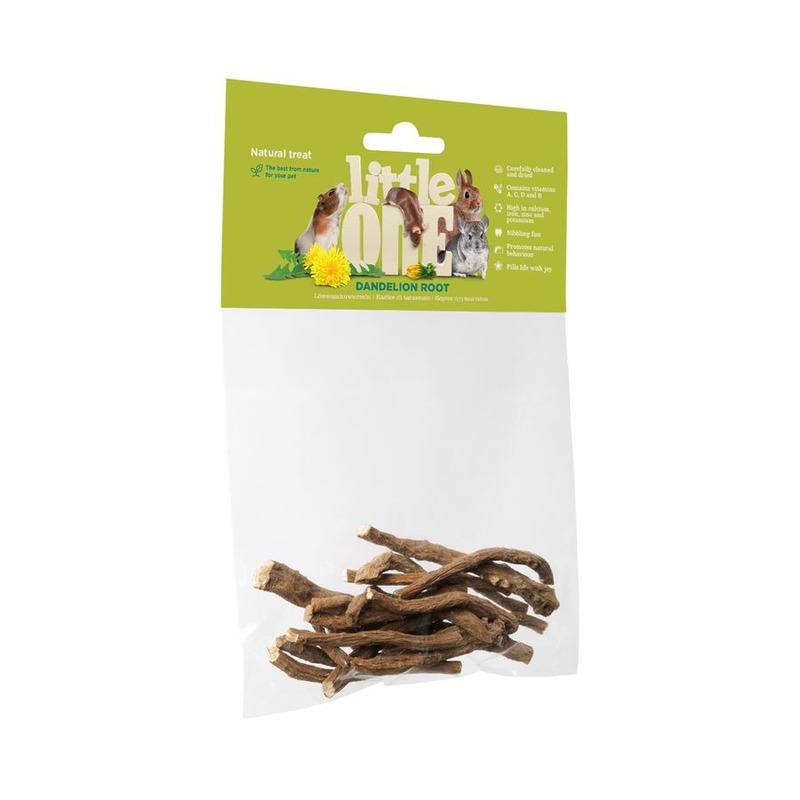 Корни одуванчика являются не только излюбленным лакомством для всех видов декоративных животных, но и полезной добавкой к их ежедневному рациону. Стачивая зубы, питомец будет получать кальций и другие минеральные вещества, содержащиеся в корнях. Лакомство собрано в экологически чистом районе и изготовлено с помощью высокотехнологичной сушки, которая позволяет сохранить полезные вещества в целостности.