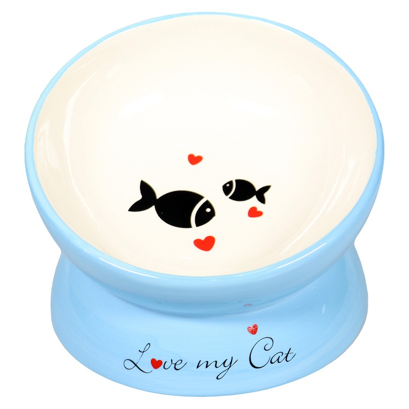 миска для кошек на подставке, керамическая, голубая - 120 мл