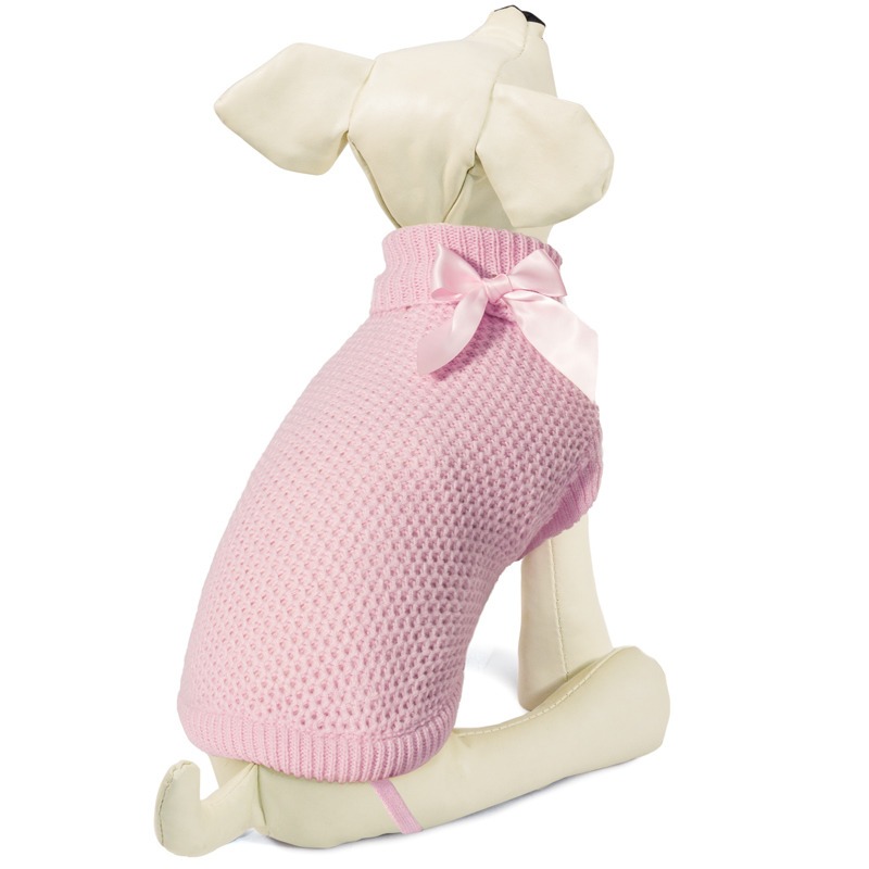Свитер нежной расцветки и оригинальной вязки с украшением в виде банта - это удобный и функциональный аксессуар для собак, который просто незаменим в холодную погоду. Изделие защитит вашего питомца от ветра и согреет в непогоду, а универсальный фасон не будет стеснять движений питомца во время прогулки. Такой свитер со стильным дизайном станет украшением гардероба вашего питомца. Материал: акрил. Цвет: розовый. Размер: 30 см (M).