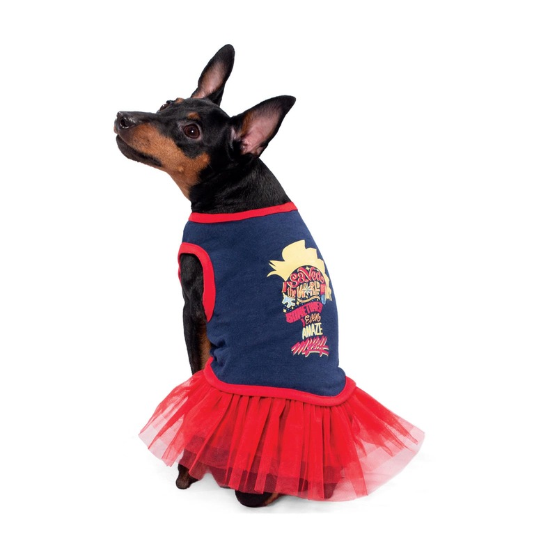 Модное цветовое сочетание и дизайнерский принт не оставит вашего питомца не замеченным. Юбочка из сетчатой ткани отлично держит форму, не стесняет движений питомца. Ткань не потускнеет даже после многократных стирок.