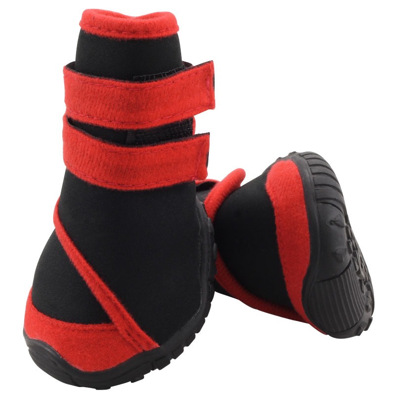 Стильный комплект ботинок из неопрена для собак с функциональной прорезиненной подошвой - незаменимый аксессуар индивидуальной защиты лап животного от воздействия агрессивных жидкостей, дорожных химреагентов, бензинов и масел на проезжей части дорог. Прочные, комфортные и непромокаемые, они сохраняют лапы собаки чистыми и сухими в ненастную погоду и защищают их от истирания о твердое покрытие при длительных и интенсивных нагрузках.