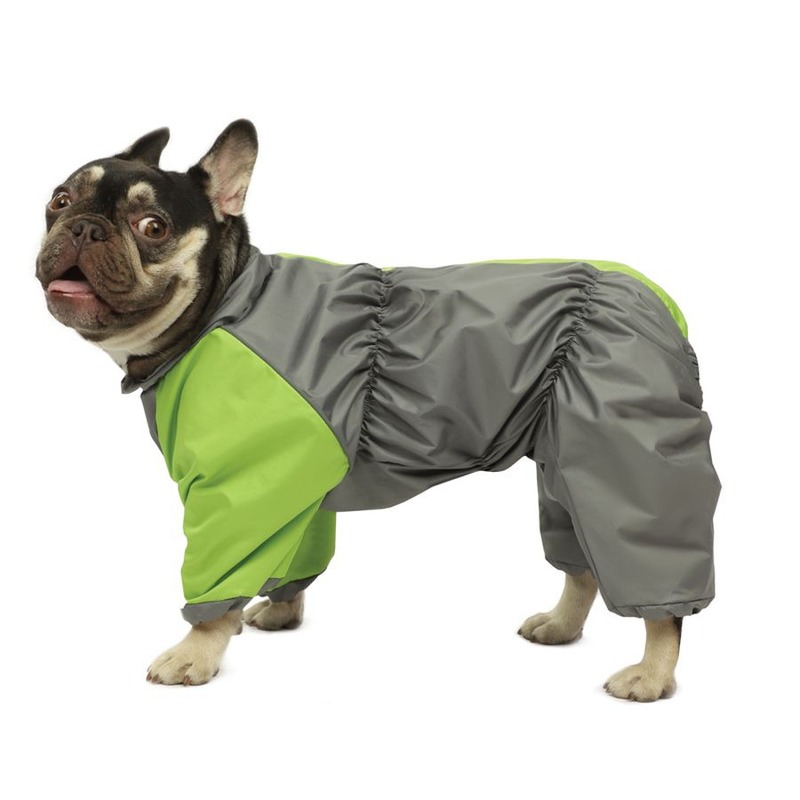 Комбинезон разработан с учетом анатомических особенностей французского бульдога. Специальные резинки обеспечивают плотную посадку, не стесняя движений. Дополнительную безопасность обеспечивает светоотражающий элемент, украшающий изделие.