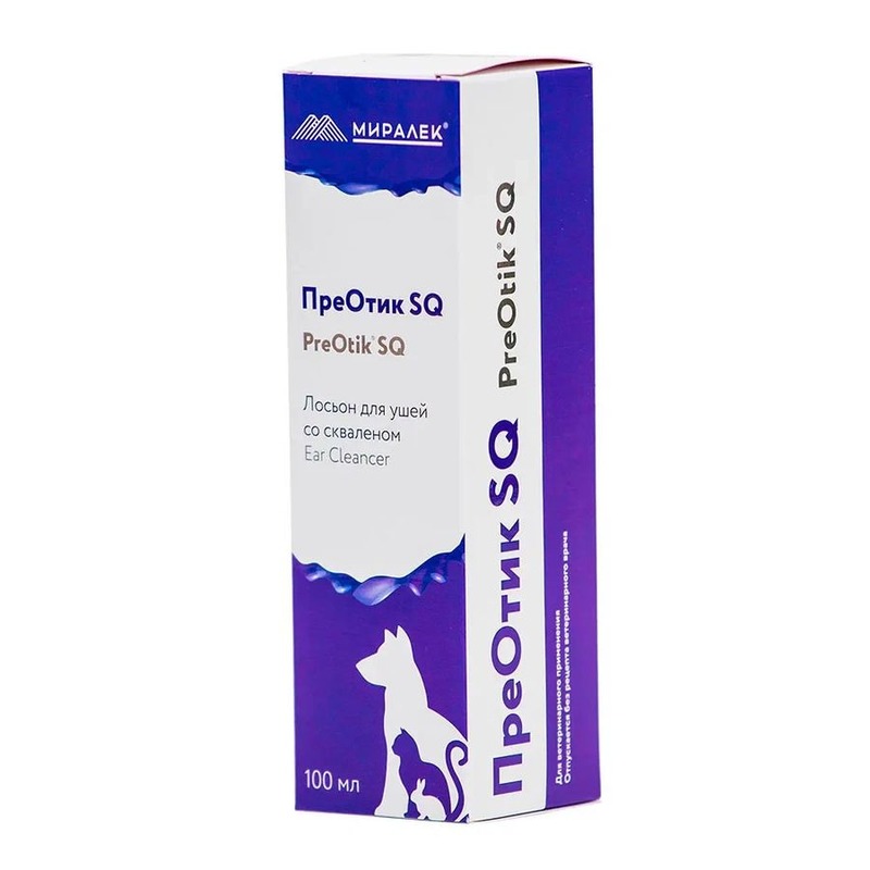 «Лосьон ПреОтик SQ» применяется для профилактической обработки ушной раковины и слуховых проходов, а также для лечения церуминозного отита, аллергического отита, раздражения и прочих поражений кожи, может использоваться для обработки перед лечением отодектоза. Салициловая кислота в составе оказывает противовоспалительное действие.