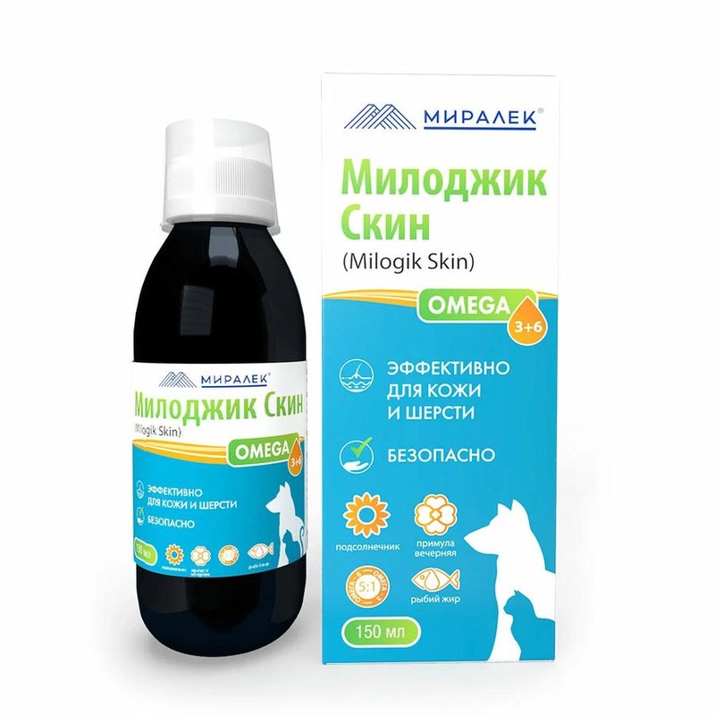 «Функциональное лакомство Милоджик Скин Омега 3+6» применяется для нормализации обмена веществ у кошек и собак, для улучшения состояния шерсти