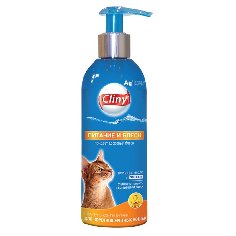 Cliny Питание и блеск Шампунь-кондиционер для короткошерстных кошек питает и укрепляет кожно-волосяной покров, придает здоровый блеск и упругость.