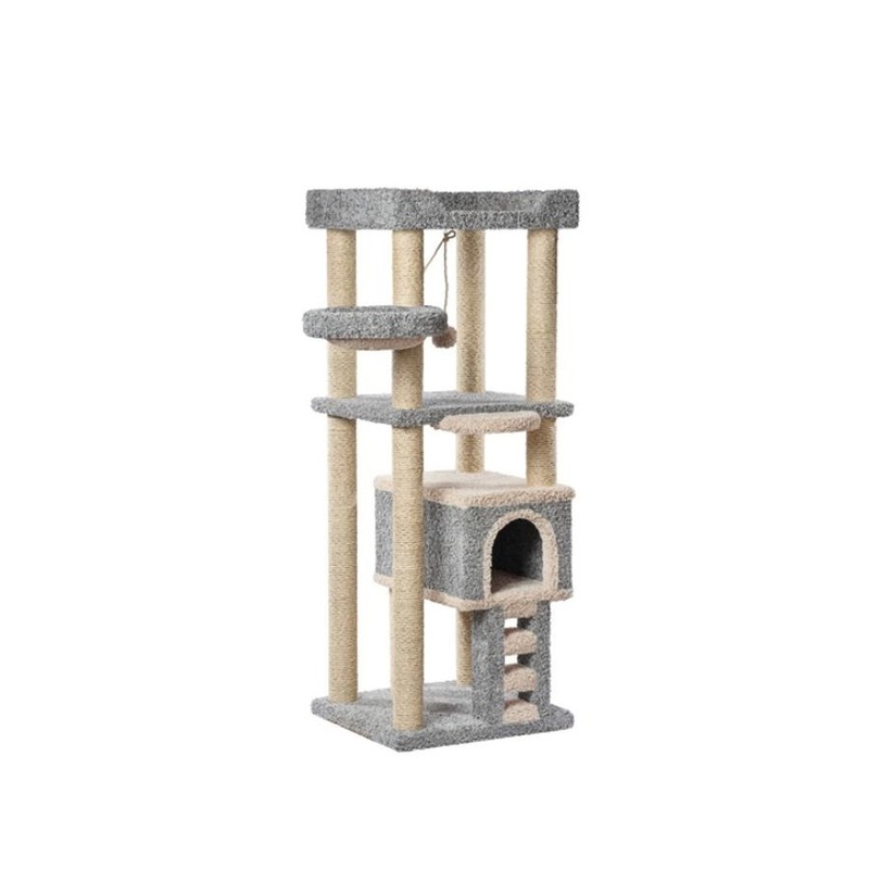 Комплекс для кошек "Проша" - это целый дворец для котиков! Одна из самых устойчивых и прочных конструкций для кошек крупных пород! Венчает комплекс огромная лежанка размером 67*62 см. Лежака для кошек на высоте 180 см. от пола станет самым любимым местом, откуда ваш питомец сможет наблюдать за происходящим. В нижней части расположен не менее просторный дом для кошек, его размер 62*42 см. В центральной части просторная полка и любимый гамак для кошки. В комплексе предусмотрено большое количество опорных столбов - это придает удивительную устойчивость и максимальную надежность конструкции. Боковые длинные столбы в высоту 101 см., диаметр когтеточек 10 см. Обивка элементов сделана из прочного и мягкого ковролина, обмотка когтеточек - сизалевый канат. Комплекс для кошек "Проша" - лучшее решение для владельцев кошек сильных и крупных пород.