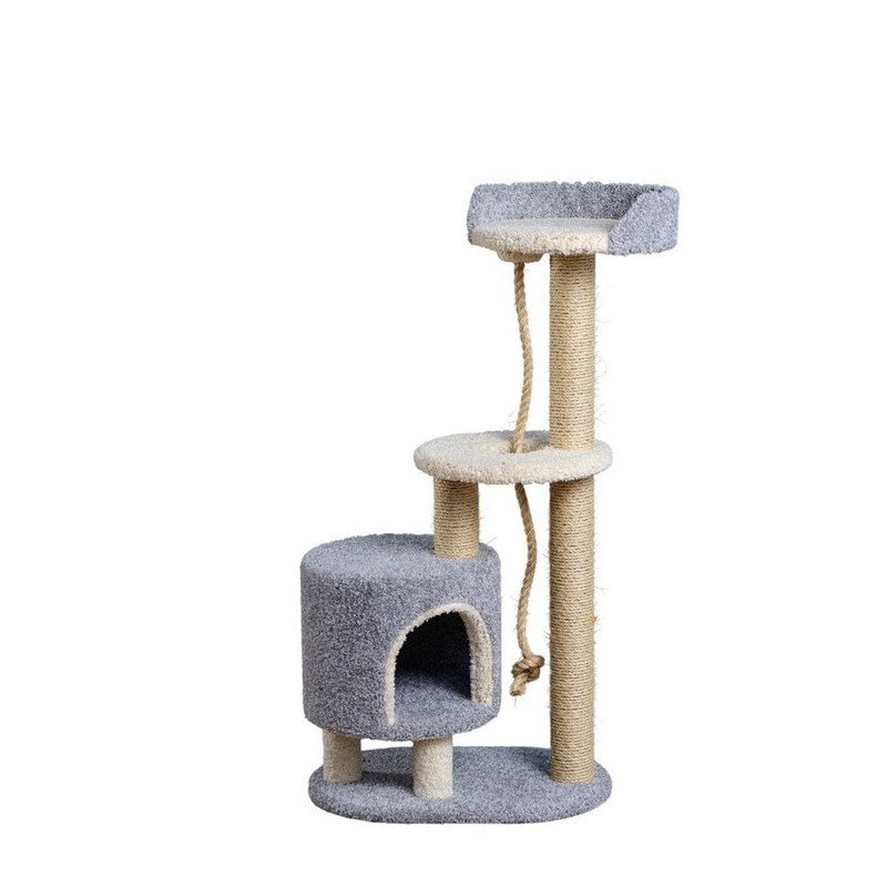 Комплекс для кошек с домиком, полочками, лазами и лежанками. Основание - 70*42 см., высота - 130 см. Домик, полки и лежанка в диаметре 42 см. Обмотка - сизалевый канат. Обивка - ковролин.