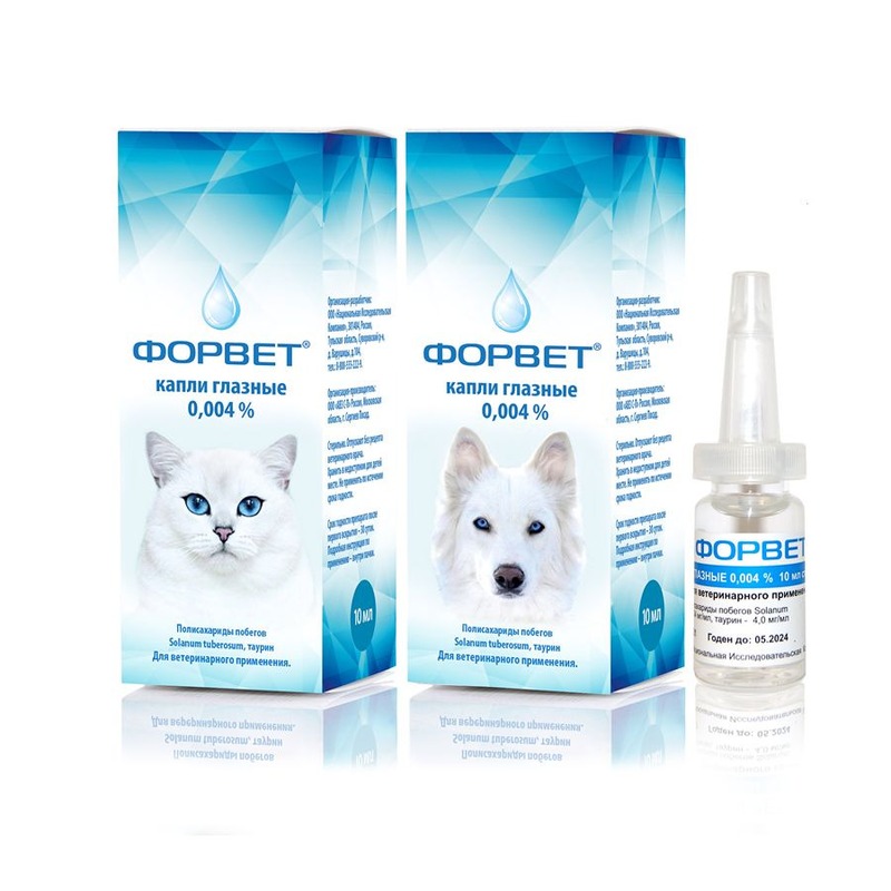 Форвет глазные капли – инновационный ветеринарный препарат, обладающий противовирусным и иммуномодулирующим, а так же противоспалительным действиями. Эффективен при лечении инфекционных заболеваний глаз.