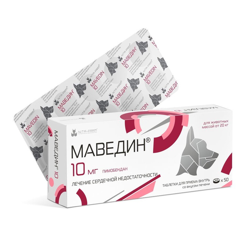Описание: Маведин - лекарственный препарат для собак для применения при сердечной недостаточности, обладает положительным инотропным и вазодилатирующим (сосудорасширяющим) действием, повышает силу сердечных сокращений и уменьшает преднагрузку и постнагрузку на сердце. Фасовка: 50 таблеток (5 блистера в упаковке)