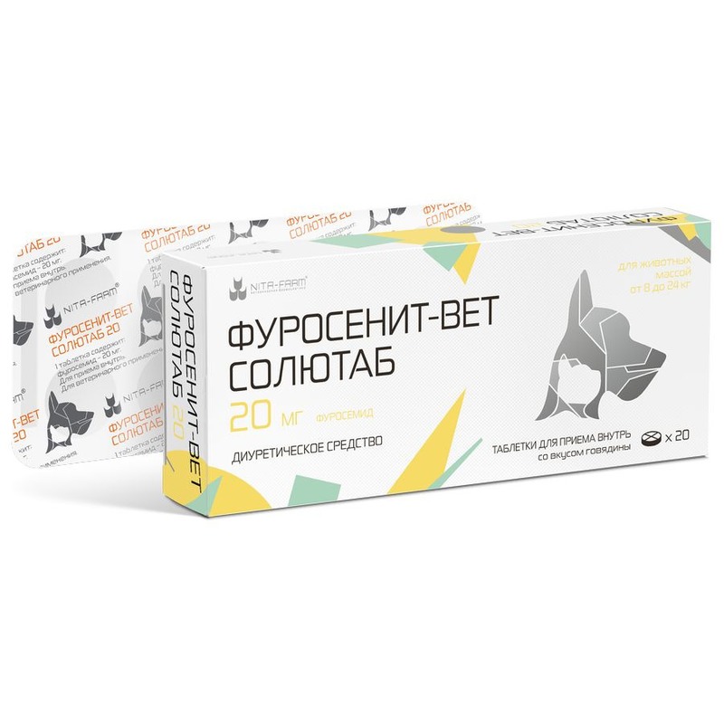 Ветеринарный диуретик на основе фуросемида в специальной лекарственной форме для кошек и собак при отеках различной этиологии.