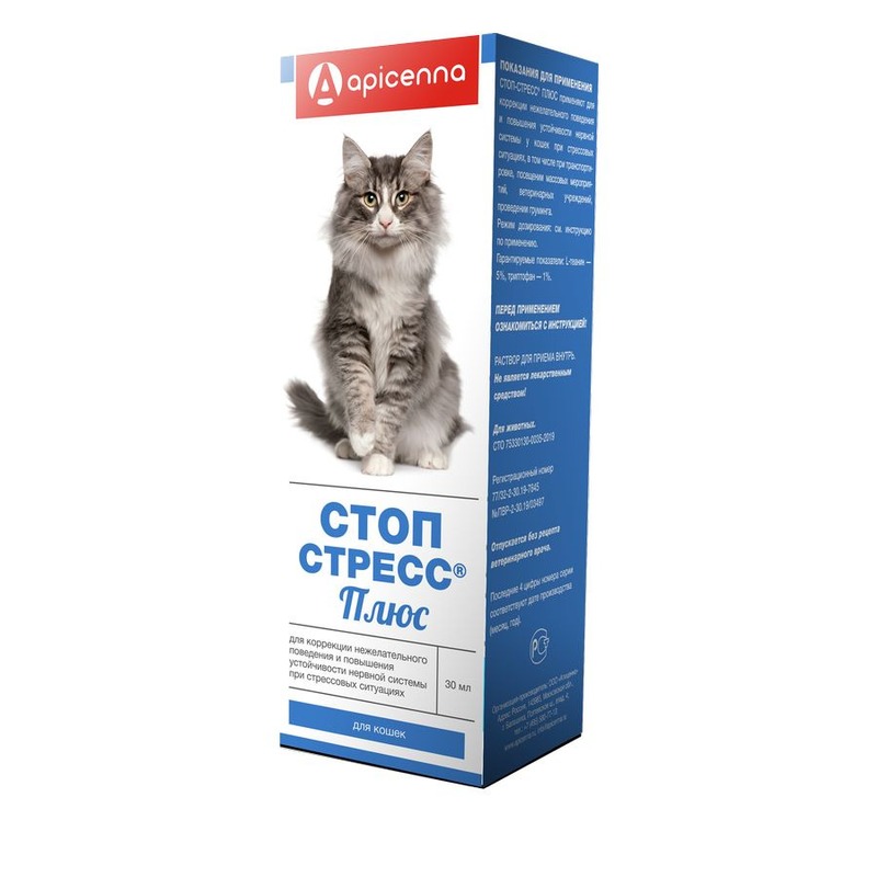 Стоп-Стресс Плюс — кормовая добавка для коррекции нежелательного поведения и повышения устойчивости нервной системы у кошек и собак при стрессовых ситуациях.