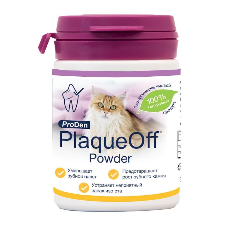 ProDen PlaqueOff Powder Cat - это запатентованная натуральная кормовая добавка, которая, как клинически доказано, значительно уменьшает неприятный запах изо рта, зубной налет и зубной камень у кошек. ProDen PlaqueOff Powder Cat производится из морских водорослей Ascophyllum nodosum. Поскольку кошки известны своим более разборчивым вкусом, в этот продукт добавлены пивные дрожжи - ингредиент, который нравится большинству кошек.