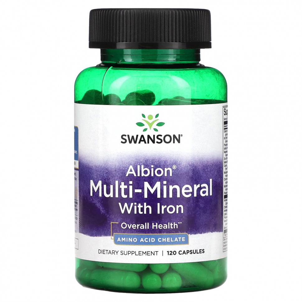 Описание Здоровье всего организмаАминокислотный хелатПищевая добавкаКомплексная минеральная формула для питания всего телаХелатные минералы Albion® для оптимального усвоенияСодержит железо, кальций, магний, цинк и многое другоеКачество, подтвержденное наукой с 1969 г.По многочисленным просьбам мы удалили железо из нашего бестселлера Swanson Albion®, чтобы каждый мог воспользоваться преимуществами того, что некоторые называют лучшими дополнительными минералами на земле! Хелатные минеральные глицинаты Albion работают лучше, чем обычные нехелатные минералы, потому что они связывают минералы с глицином - аминокислотой, которая легко идентифицируется и всасывается через стенки кишечника. Компания Albion впервые применила процесс хелатирования и имеет мировые патенты на свои революционные технологии. Рекомендации по применению В качестве пищевой добавки принимать по две капсулы один-два раза в день во время еды, запивая водой. Ингредиенты Желатин, микрокристаллическая целлюлоза (растительная клетчатка), мальтодекстрин, лимонная кислота, стеарат магния.Содержит ракообразных (омаров, креветки и крабы). Предупреждения Случайная передозировка продуктов, содержащих железо, — основная причина отравлений с летальным исходом среди детей до 6 лет. Хранить продукт в недоступном для детей месте. В случае передозировки немедленно обратиться к врачу или в токсикологический центр.Только для взрослых. Проконсультируйтесь с врачом, если вы беременны, кормите грудью, принимаете лекарства или страдаете каким-либо заболеванием. Хранить в недоступном для детей месте. Не использовать, если защитная пленка повреждена. Хранить в сухом прохладном месте.