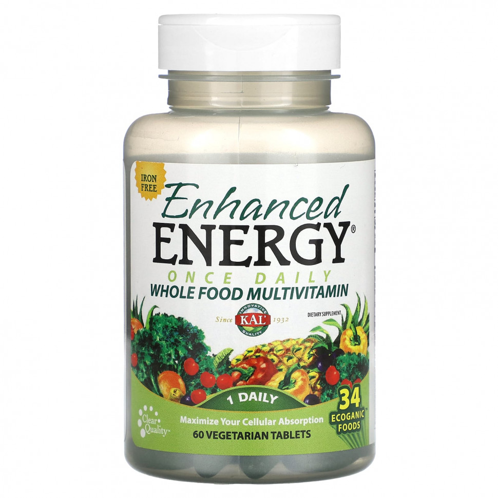Описание Инновационное качество с 1932 годаПищевая добавкаМаксимизируйте клеточное усвоениеClear Quality34 продукта EcoganicОписание. KAL® Enhanced Energy® обеспечивает сбалансированный подход к ежедневному питанию всего организма благодаря синергетической смеси витаминов, минералов и кофакторов из натуральных пищевых продуктов. Этот удивительный комплекс мультивитаминов из цельных продуктов содержит органические фрукты и овощи, а также бодрящие зеленые продукты, антиоксидантные флавоноиды, укрепляющие иммунитет сушеные грибы, пищеварительные ферменты и натуральные каротиноиды для поддержки нескольких систем клеток — и все это в одной таблетке.Технология ActivTab™ гарантирует распад таблеток в течение 30 минут согласно стандартам USP. Рекомендации по применению Принимать по 1 вегетарианской таблетке в день во время еды или запивая стаканом воды. Применять только согласно инструкции. Ингредиенты Целлюлоза, кроскармеллоза натрия, альгинат натрия, гороховый крахмал, стеарат магния, диоксид кремния, стеариновая кислота и масло перечной мяты.