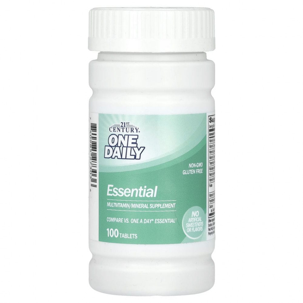 Не содержит глютенаМультивитаминная, мультиминеральная добавкаСравните с One A Day® EssentialНе содержит добавленных дрожжей и искусственных ароматизаторовГарантированное качество — продукт прошел лабораторные испытания