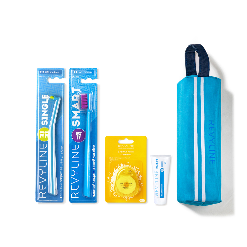 В удобном дорожном пенале помещается всё, что необходимо для эффективной гигиены полости рта в поездке.