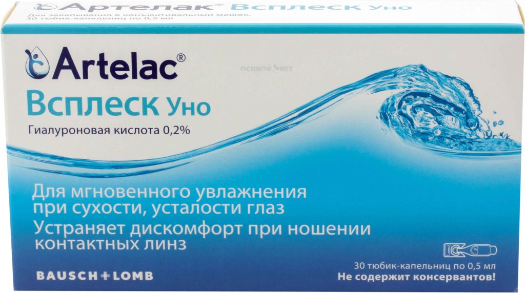 Артелак Всплеск Уно — увлажняющий офтальмологический раствор от производителя линз и сопутствующих товаров Bausch & Lomb.