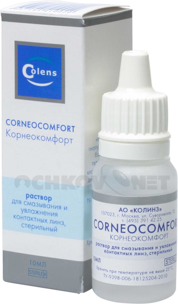 Раствор для ухода за глазами и контактными линзами «Корнеокомфорт» является отечественной разработкой компании Colens.