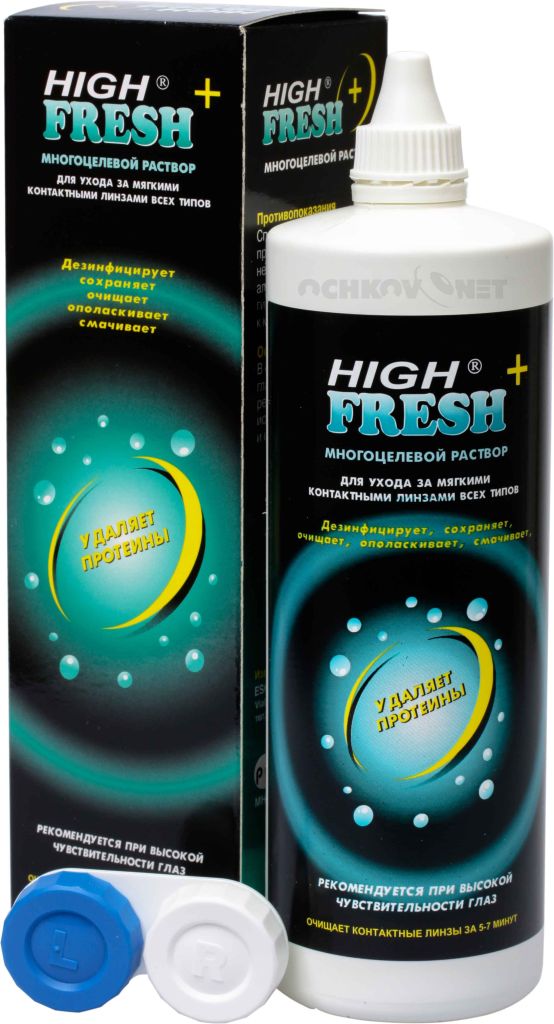 Многоцелевой раствор HighFresh+ (ХайФреш Плюс) применяется для ежедневной дезинфекции и хранения мягких контактных линз всех типов.