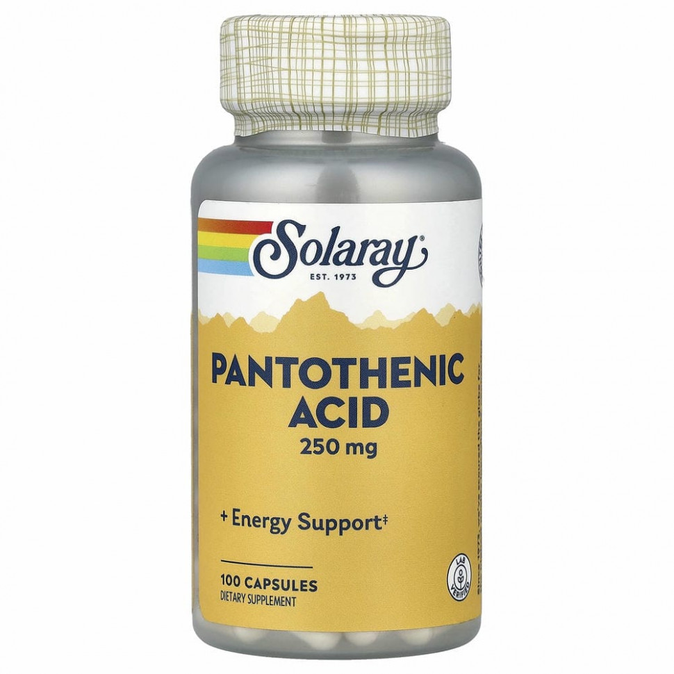 Solaray, Пантотеновая кислота, 250 мг, 100 капсул
