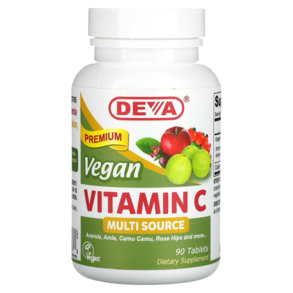 (из запатентованной смеси экстрактов плодов амлы, экстракта вишни ацеролы, аскорбиновой кислоты, каму-каму & шиповник)250 мг278% Кальций (в виде карбоната кальция) 100 мг 8% Премиальное качествоАцерола, амла, каму-каму, шиповник и многое другое ...Пищевая добавкаВитамин С, используемый в этом продукте, полностью получен из источников без ГМО: Вишня ацерола, плоды амлы, ферментация, каму-каму и плоды шиповника.Для веганов. Этот продукт не содержит продуктов животного происхождения, производных или побочных продуктов. На 100 % вегетарианский и веганский продукт. Этот продукт прошел регистрацию Vegan Society.Витамин С - это водорастворимый витамин, участвующий в формировании коллагена, который является важным компонентом костей, мышц, хрящей и кровеносных сосудов. Этот витамин плохо сохраняется в организме, и некоторые из основных источников витамина C включают фрукты и овощи. Другими мощными источниками витамина C являются высококачественные добавки, такие как продукты Deva Vegan Vitamin C.